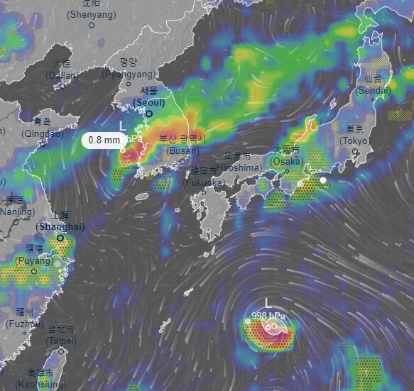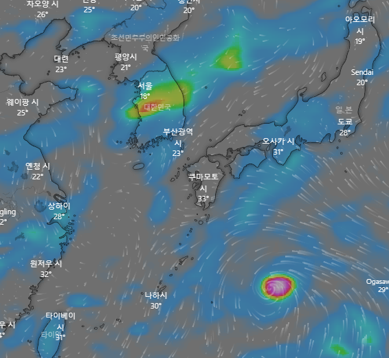 11호 태풍 진로 보기 가장 좋은 사이트 중 하나는 윈디닷컴입니다. PC나 스마트폰 화면으로 보기 가장 좋은 구성이 되어 있어서 태풍이 얼마나 위력적일지, 비는 얼마나 오게 될 것 같은지, 바람은 얼마나 센지 확인하기 좋습니다.