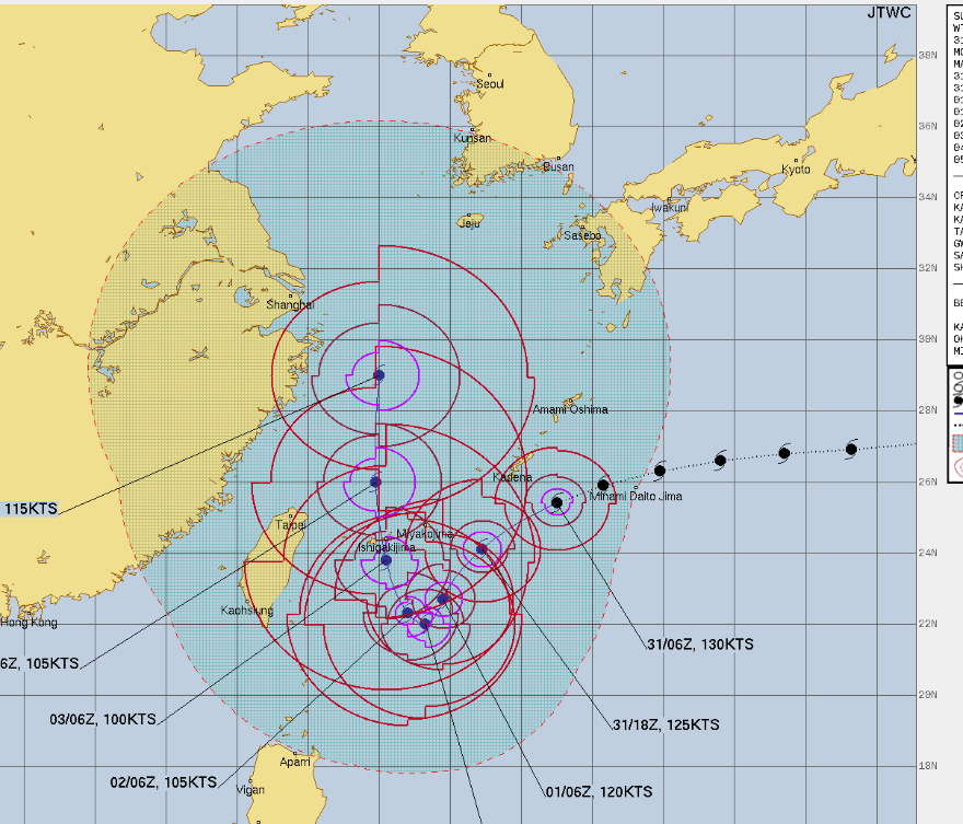 하지만, 더 서쪽으로 진행한다면 대만에도 영향을 안 줄리는 없겠죠. 워낙 강풍반경이 커서 간접 영향을 받을 수 있을 것으로 보입니다.